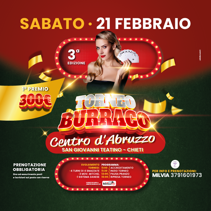 Sabato 21 febbraio il Centro d’Abruzzo si trasforma in un campo di sfida a colpi di strategie, divertimento e un pizzico di sana competizione. Un’occasione perfetta per divertirsi e vivere una giornata all’insegna del gioco e della compagnia.